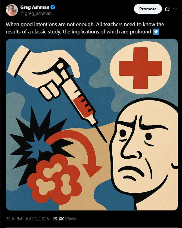 The authors are for explicit teaching while railing against ‘a return to transmissive, teacher-centred learning,’ which is just a pejorative way of describing… explicit teaching. This leads to a confused paper where at one point, we read that in explicit teaching: